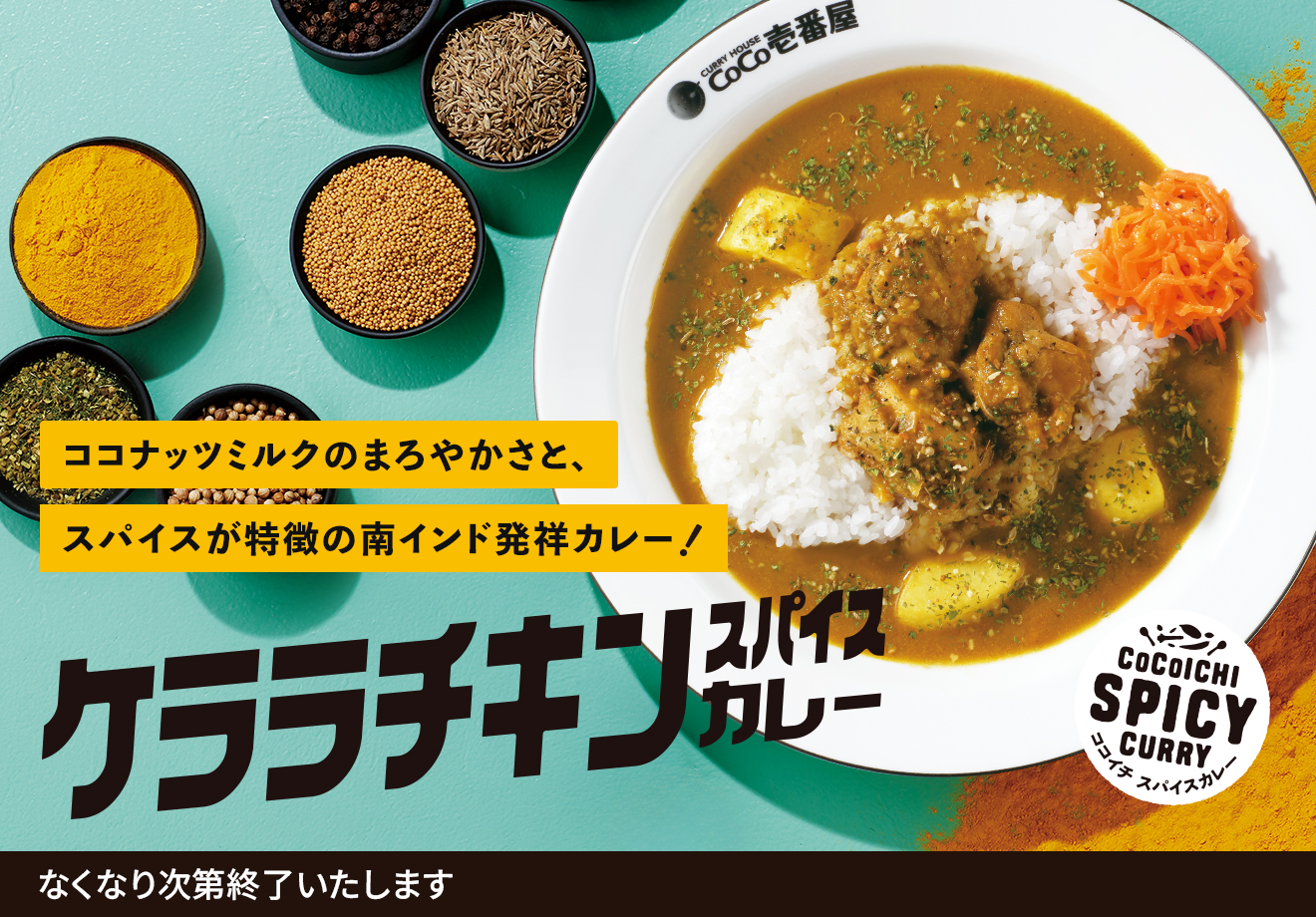 - 2026年04月13日商品情報豊かなスパイスの風味とココナッツミルクのまろやかさ ココイチ、「ケララチキンスパイスカレー」を 4月16日より数量限定で販売